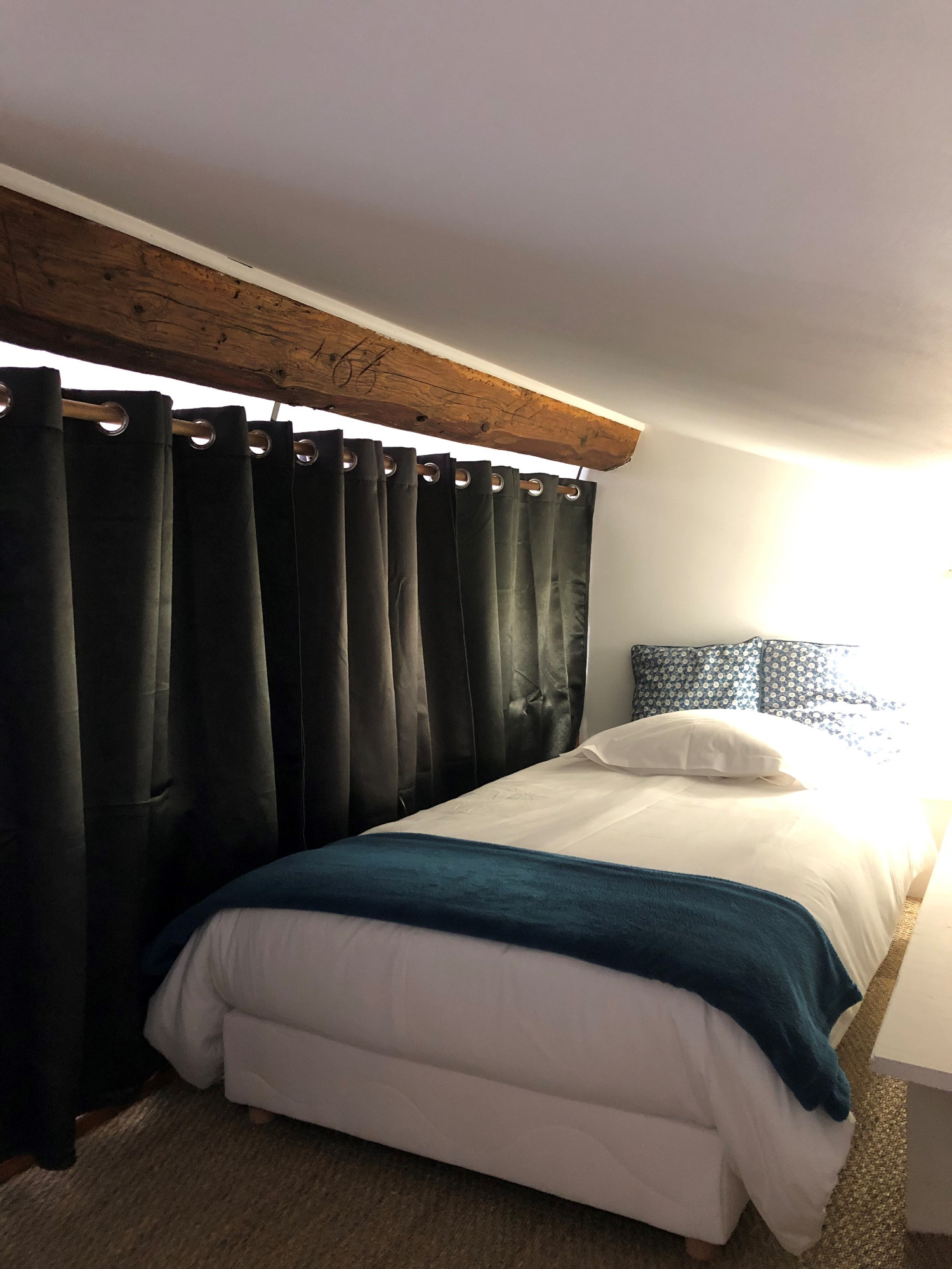 Un couchage supplémentaire en mezzanine, situé au-dessus de la salle de bain, permettant d’accueillir une personne supplémentaire en toute indépendance.